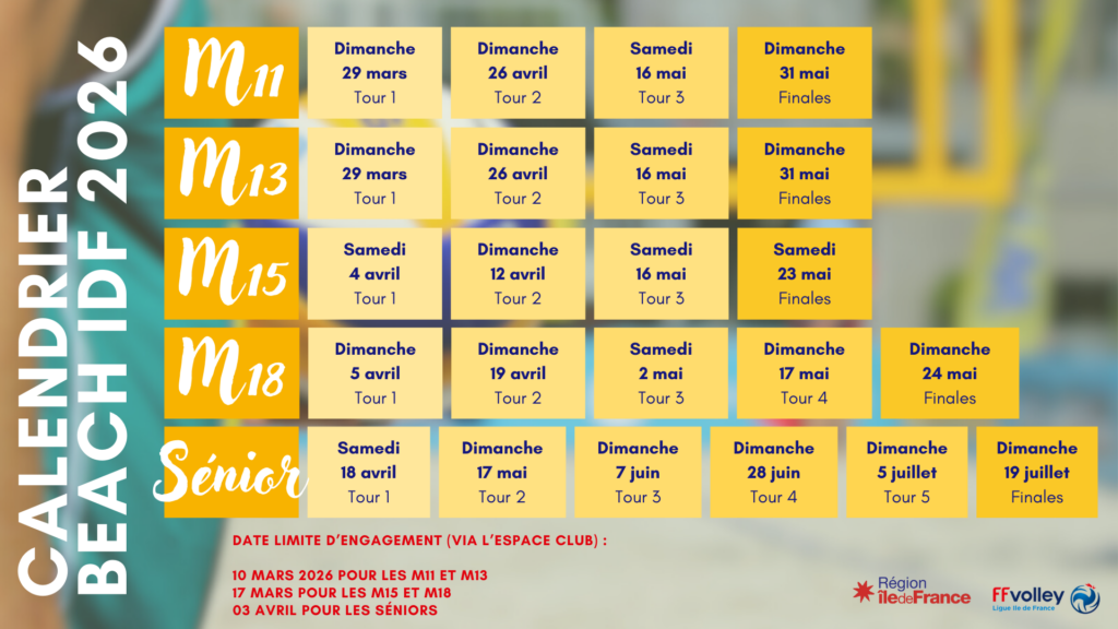 Les engagements sont possibles jusqu’au 10 mars 2026 pour les M11 et M13, jusqu’au 17 mars 2026 pour les M15 et M18 et jusqu’au 3 avril 2026 pour les séniors.